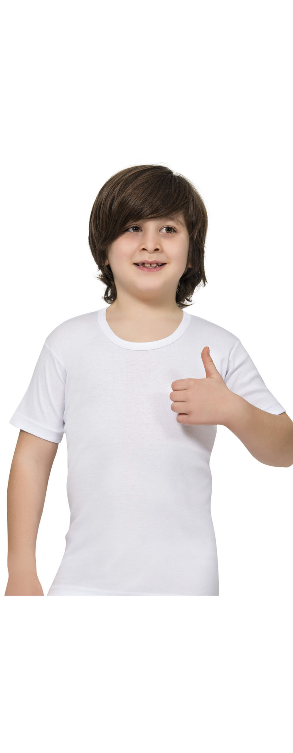 Παιδική βαμβακερή κοντομάνικη φανέλα σε λευκή απόχρωση. Είναι ιδανική για καθημερινή χρήση.